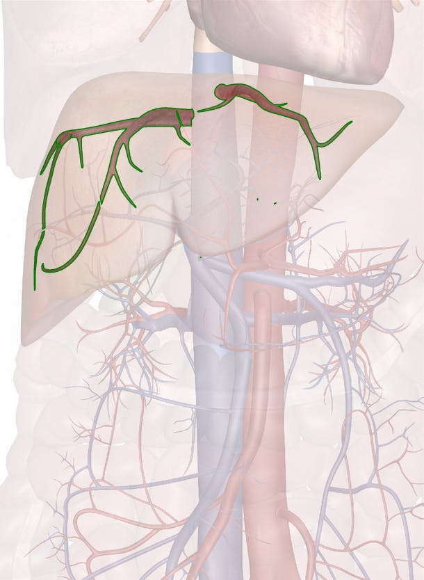 The hepatic veins act as blood delivery conduits, returning deoxygenated blood from the liver to the heart. Oxygenated blood is delivered to the liver by the hepatic artery, while the hepatic portal vein delivers nutrient-rich blood from the digestive organs to the liver. The liver plays several vital roles in the body by removing toxins from the blood, storing minerals and glucose, and turning fats and proteins into glucose. After blood passes through the liver for processing, it must return to the heart for distribution around the human body to provide essential nutrients to the body’s tissues.