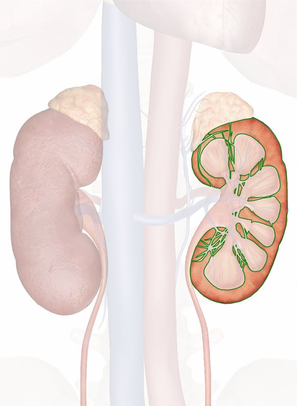 The renal cortex is where several of the distal convoluted tubules merge and form a collecting duct, which in turn passes into the renal medulla, becoming larger and larger as it joins other collecting ducts, the resulting tube is called the papillary duct.