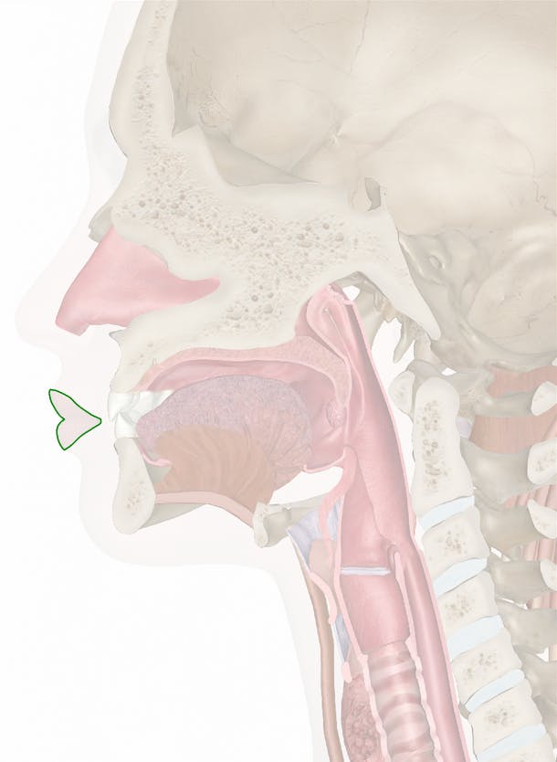 The lips are highly mobile structures that surround the mouth opening. They contain skeletal muscles and a variety of sensory nerves that are useful in judging the temperature and texture of foods. Their normal reddish color is due to an abundance of blood vessels near their surfaces. The external borders of the lips mark the boundaries between the skin of the face and the mucous membrane that lines the alimentary canal.