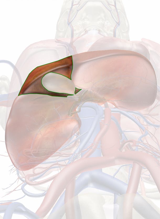The qaudrate lobe is situated on the visceral surface of the right lobe to the left of the fissure for the gallbladder.