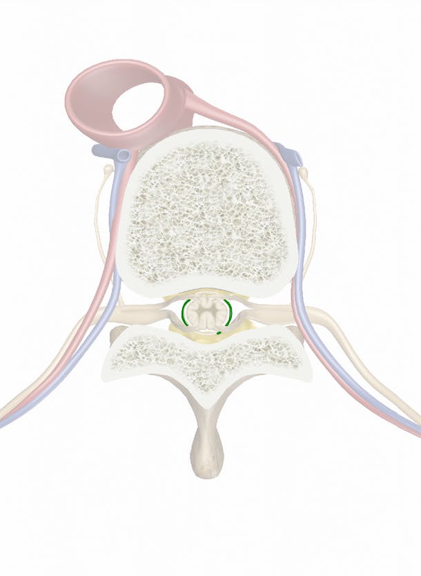 The spinal dura mater forms a tough, tubular dural sheath that extends into the vertebral canal and surrounds the spinal cord. There is no connection between the dural sheath and the vertebrae that form the canal, but there is a cavity called the epidural space that is highly vascular and contains loose and adipose tissue that forms a protective pad around the spinal cord.