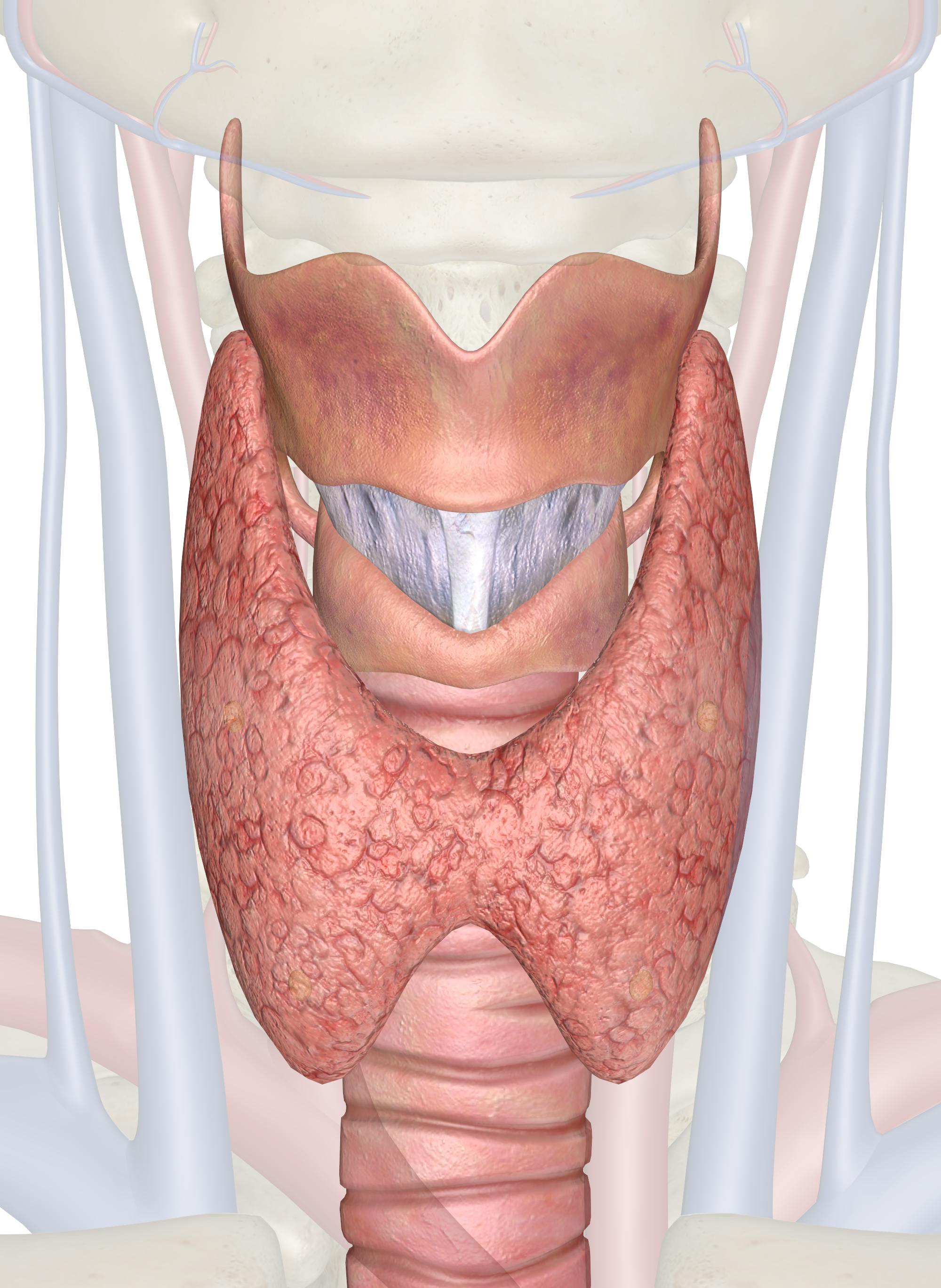 The thyroid gland and parathyroid glands are a group of endocrine glands located in the base of the neck. These glands play a vital role in maintaining the body's homeostasis by producing hormones that regulate the body's metabolism and free calcium levels. Variations in thyroid hormones can lead to drastic changes in energy level, growth, development, and reproduction. Calcium plays a critical role in maintaining healthy bones and teeth as well as stimulation of neurons and muscle cells vital to the nervous, muscular, and cardiovascular systems.