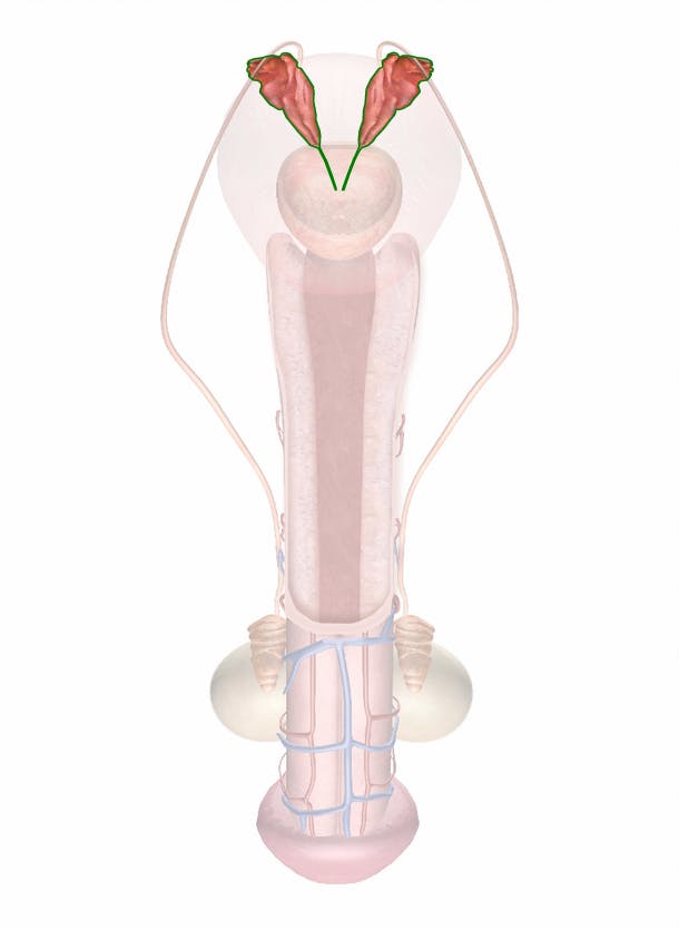 The seminal vesicles are small sacs in which seminal fluid is stored.