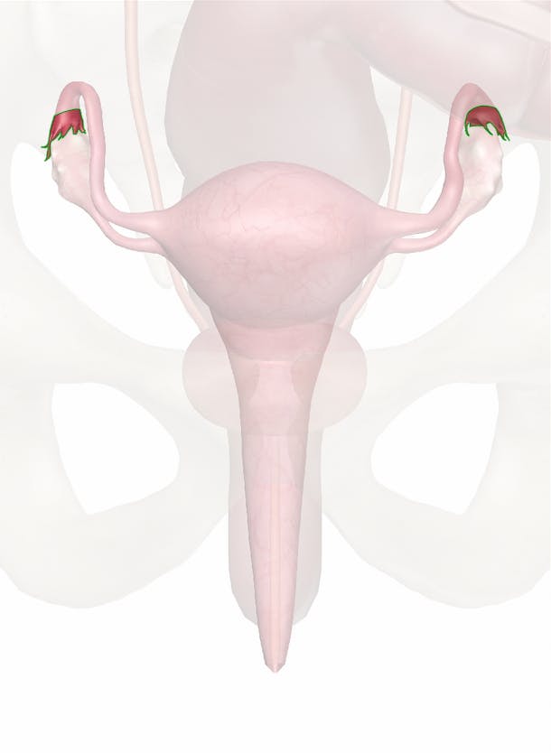 The fimbriae are irregular branched extensions of the margin of the infundibulum. Although the infundibulum generally does not touch the ovary, one of the larger extensions (the ovarian fimbria) is connected directly to it.