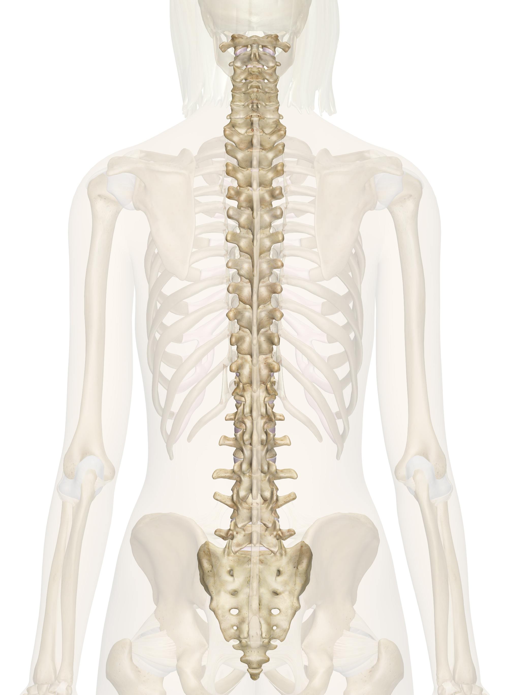 Stretching down the midline of the trunk from the base of the skull to the coccyx, the spine plays an extremely important role in our bodies as it supports the upper body's weight; provides posture while allowing for movement and flexibility; and protects the spinal cord.